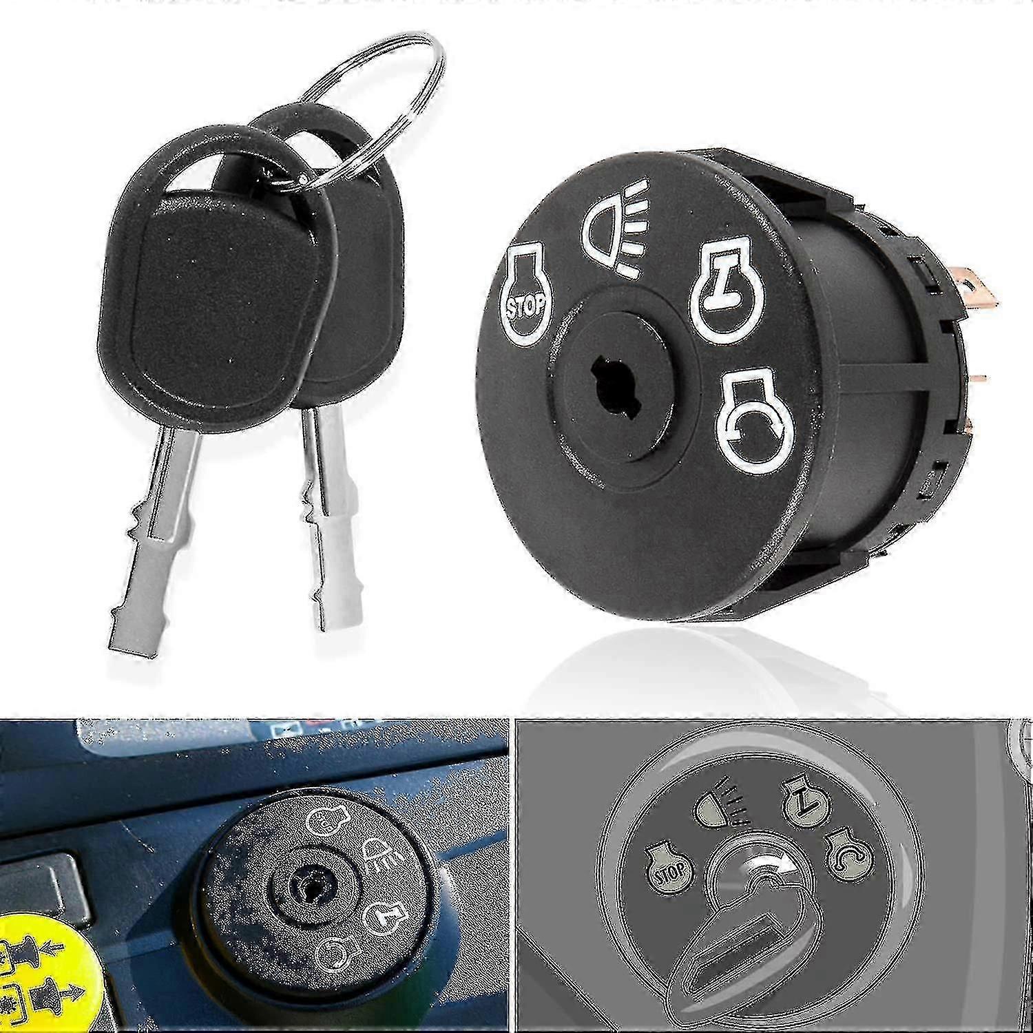Starter Ignition Switch W/ 2 Keys Fit For John Deere X100 Series Tractor X300 X304 X310 X320 X324 X330 X340 X350 X354 X360 X370 X380 X384 X390 X500 X5