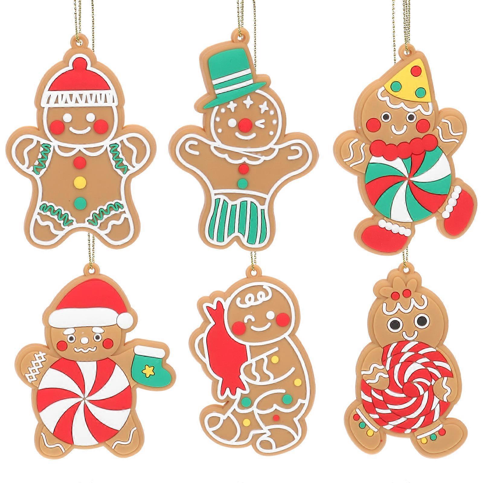 Gingerbread Man Ornaments Christmas Party Decoration Gingerbread Man Shape Assorted Color PVC Material Hanging Decoration 12Pcs