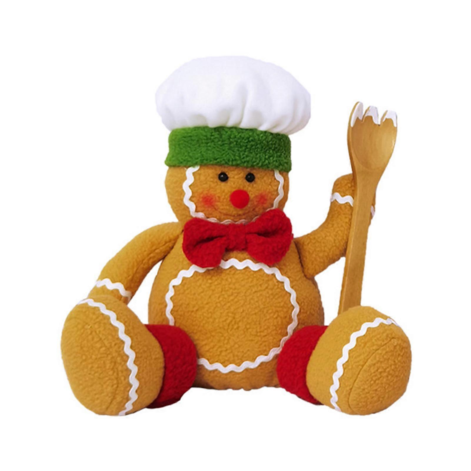 Gingerbread Man Doll Plush Stuffed Sitting Cookie Gingerbread Ornaments Soft Christmas Tree Decoration for Door Mantel Shelf Decor Qinghai