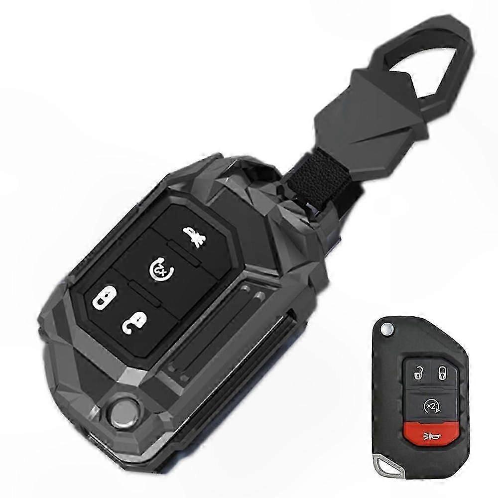 Key Fob Case Cover Made from Zinc Alloy for Jeep Wrangler Gladiator Models (4 Buttons, Gray)