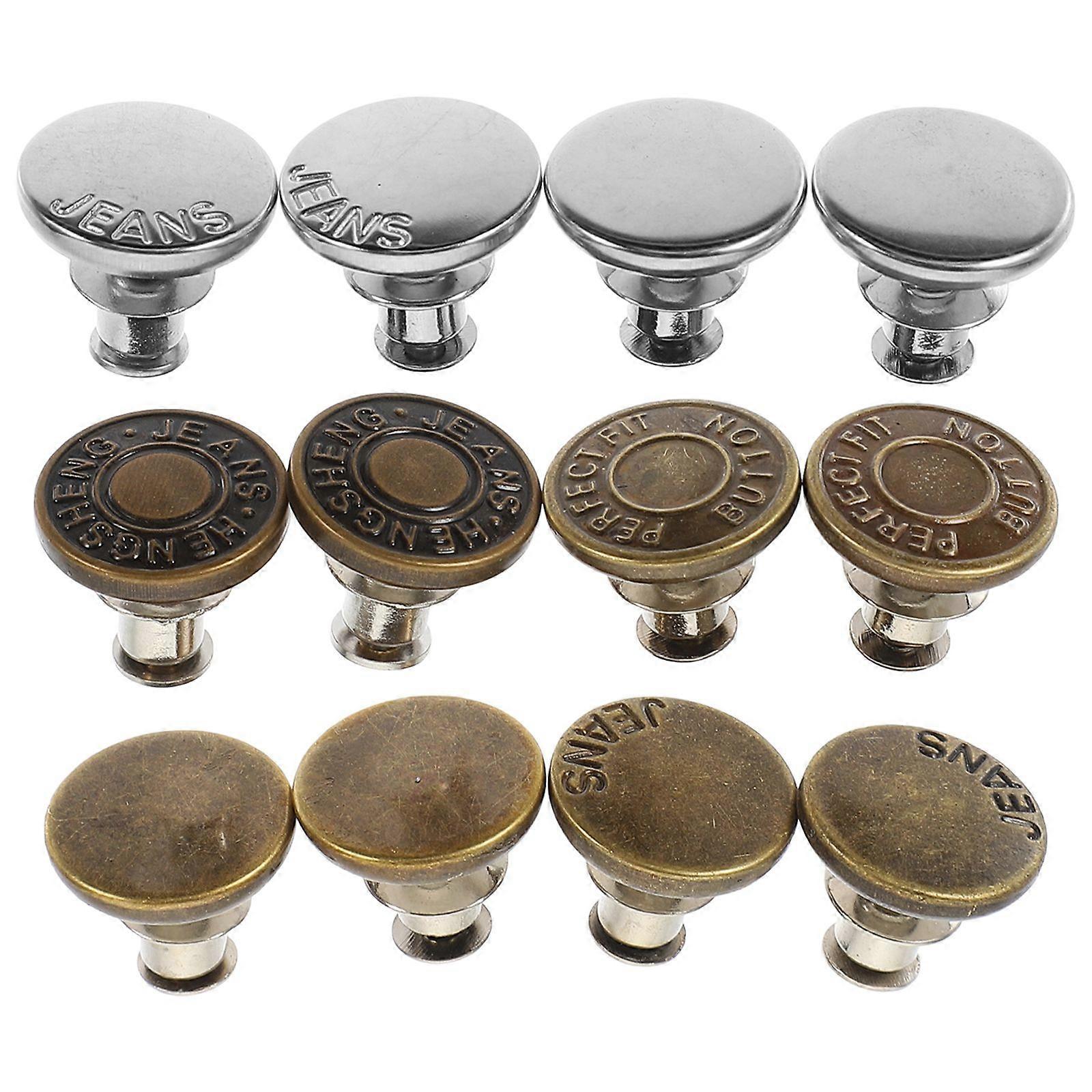 12Pcs Buttons for Jeans Adjustable Jean Button Pin Pant Waist Tightener No Sew Pants Button
