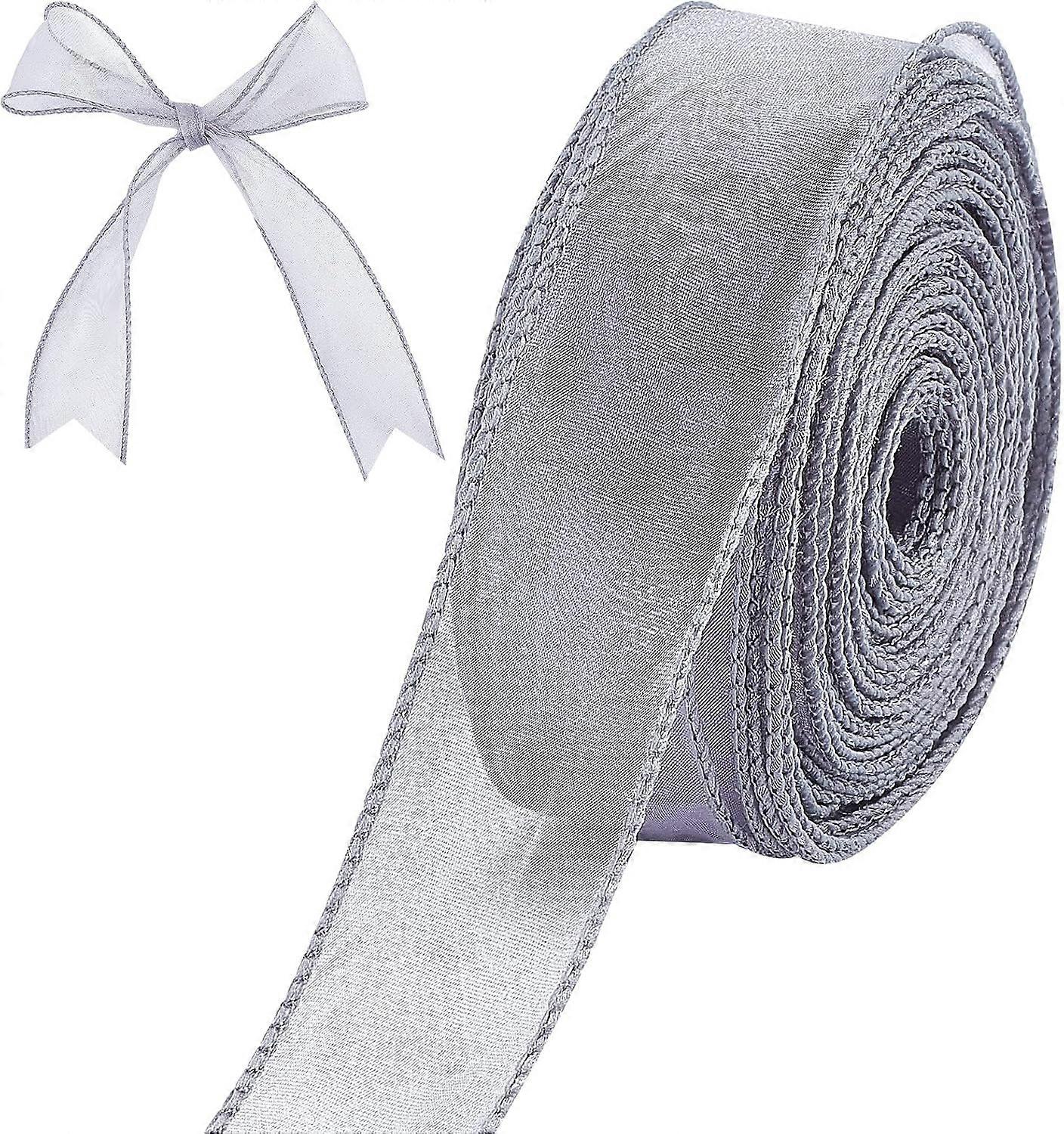 Sheer Organza Ribbon Grey 1.5 Inch x 10.9 Yard/Roll Chiffon Ribbon Gift Wrapping Ribbon Christmas for Wedding Invitations Bridal Bouquets DIY Crafts B
