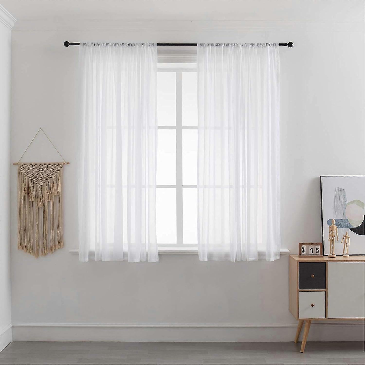 Sheer Curtains, Smooth and Soft Rod Pocket Filmy Curtains Weaken Sunlight, 54 inch Wide by 45 inch Length, Set of 2 Panels, White