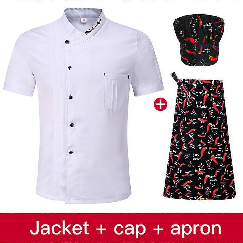 Chefs uniform Short Sleeve Summer Set Restaurant Hotel Kitchen Workwear Men and Women Youth Breathable Thin Jacket + Hat + Apron