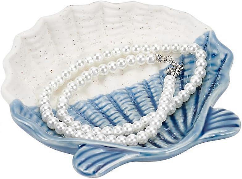 Shell Ceramic Jewelry Plate Light Steel Blue Shell Ring Holder Shell Shape Jewelry Storage Tray Vanity Decorations Accessories for Rings Earrings Brac