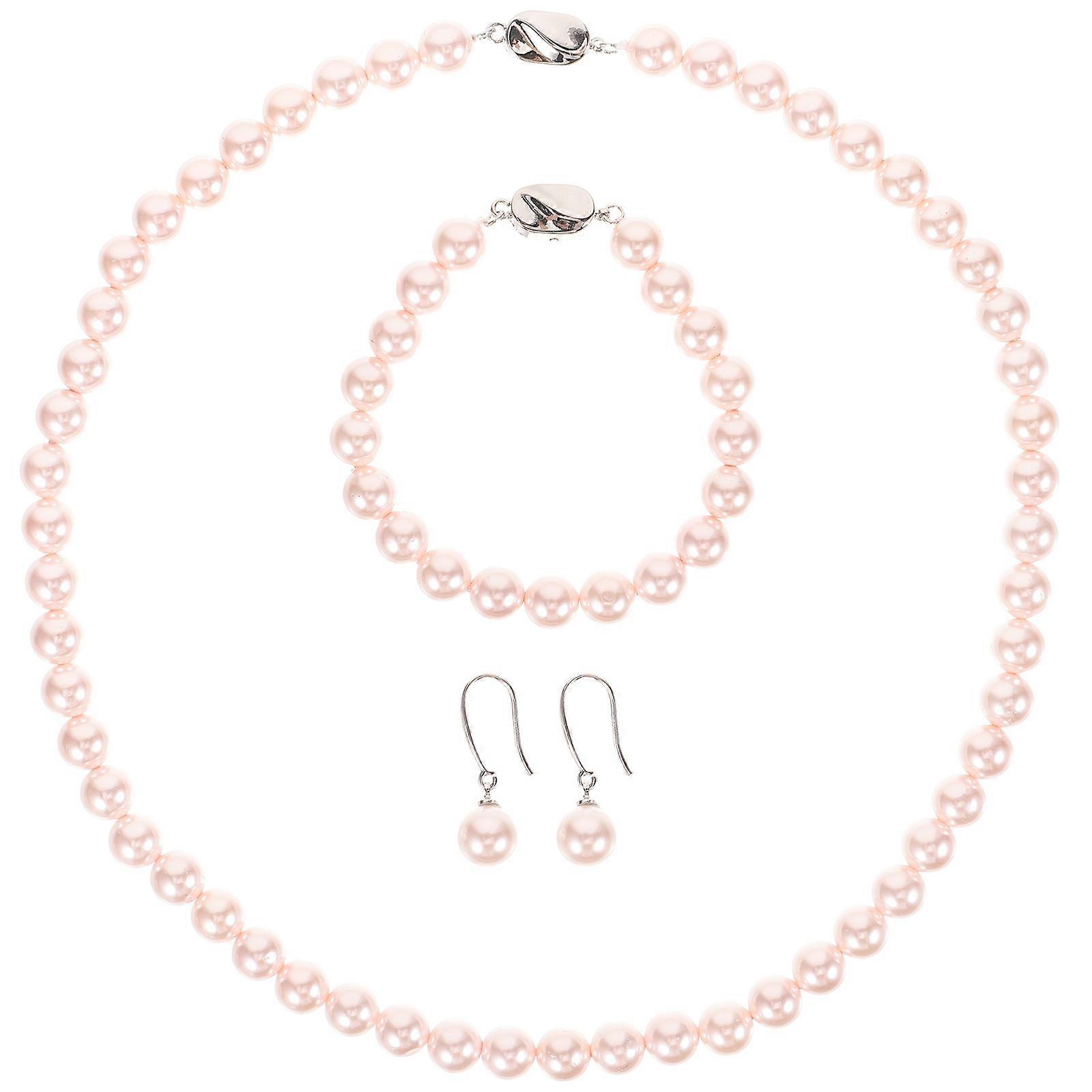 1 Set of Shell Pearl Jewelry Decorative Bracelet Earring Necklace Jewelry (Pink)