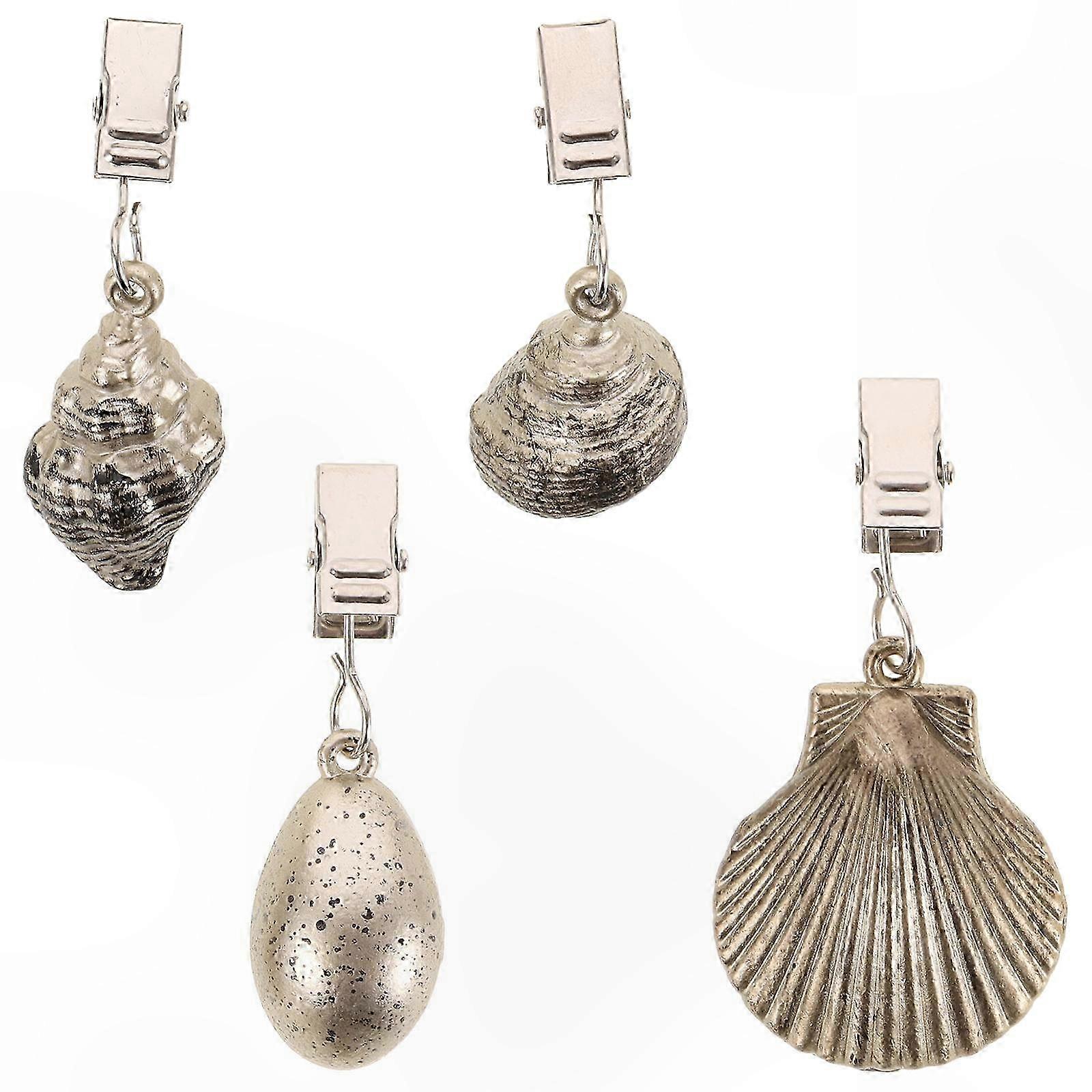 Shell-Shaped Tablecloth Weights with Metal Clips, Zinc Alloy Fixation Set for Table Covers, 4 Pieces, 7.00x4.00x2.00cm Size