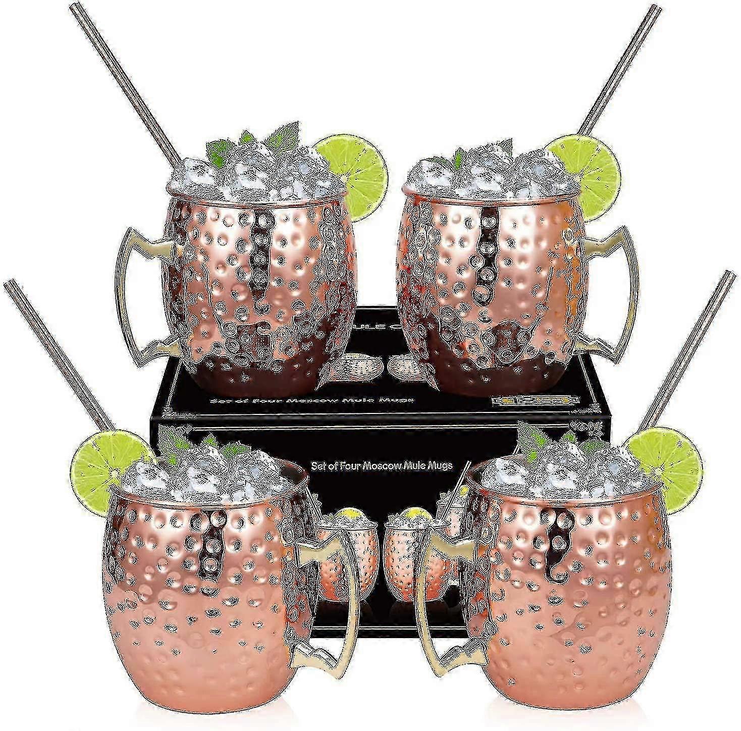 Shaving Bowls Mugs Moscow Mule Copper Mugs - Set 4-H crafted-Pure Solid Copper Mugs 16 oz Gift Set
