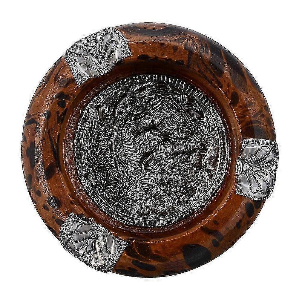 Classic 3-Inch Wooden Ashtray with Cigar Holder - Elegant Smoking Accessory for UK Adults
