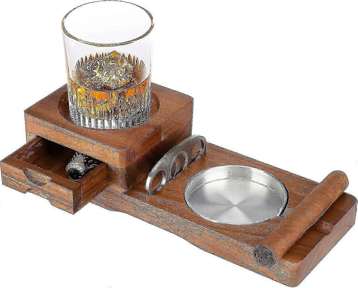 Cigar Ashtray Coaster Whiskey Glass Tray Wooden Ash Tray With Cigar Cutter
