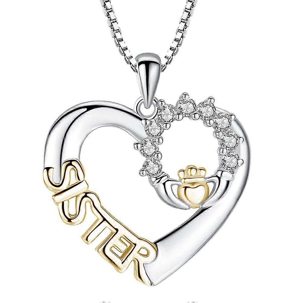 Sister Necklace Girls Clavicle Chain Heart Shape Alloy Material Elegant Design Birthday Party 1Pcs