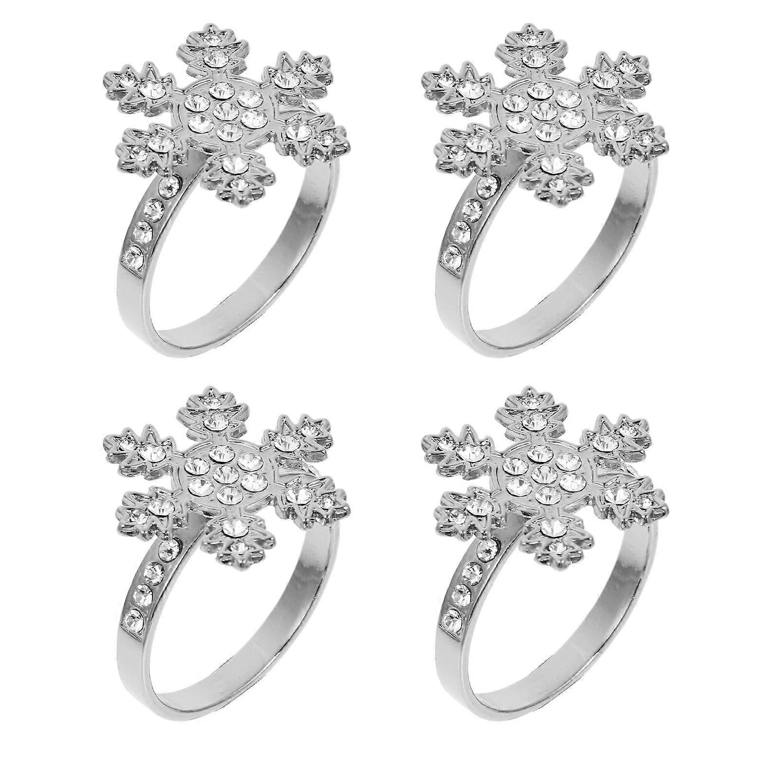 Chic Napkin Ring Silver Snowflake Shape Decoration 4Pcs