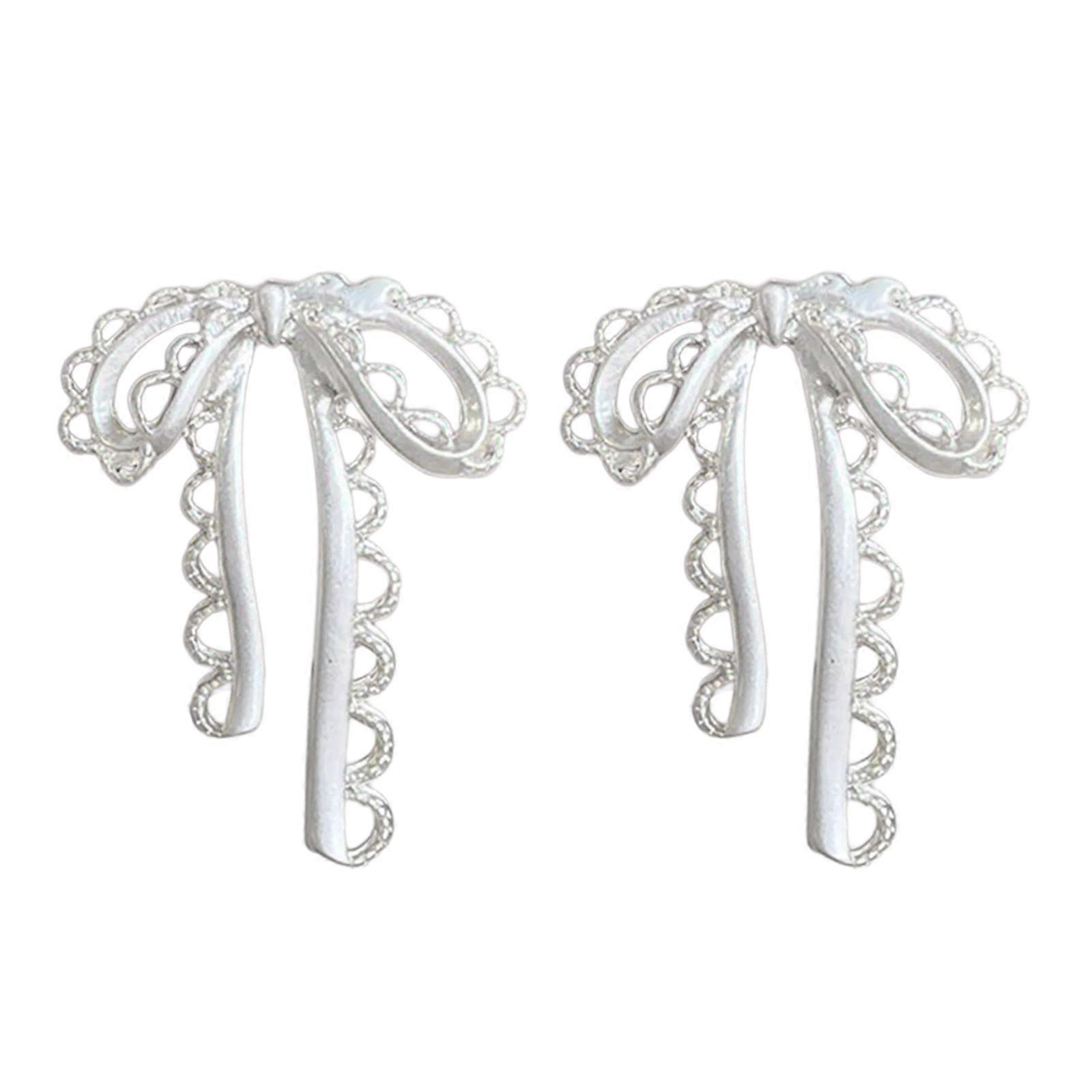 Elegant Hollow Out Lace Ribbon Bowknot Stud Earrings for Women and Girls Bows Earwear Comfortable to Wear