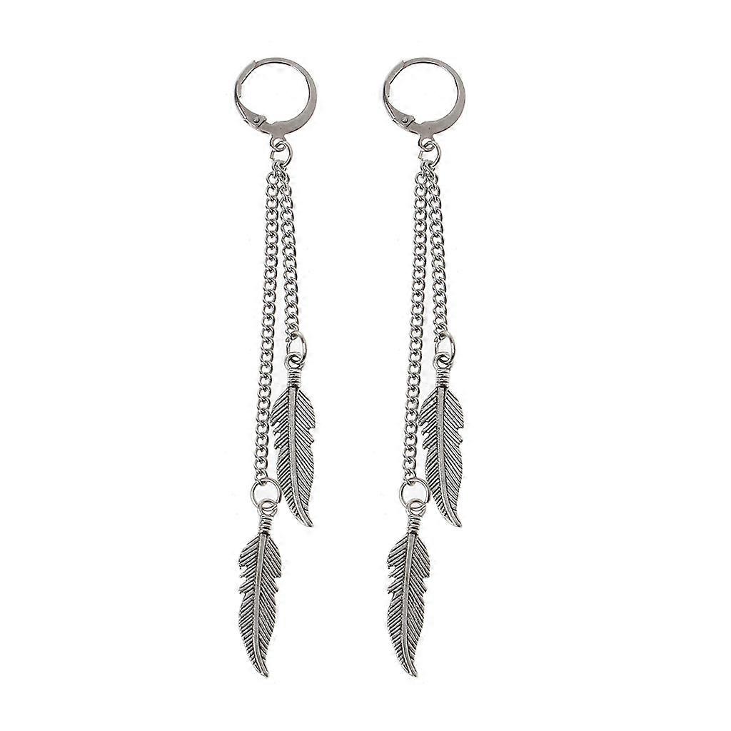 Chic Feather Pendant Hoop Drop Earrings Korean Exquisite Small Leaf Dangle Earrings All-match for Casual Street Shooting