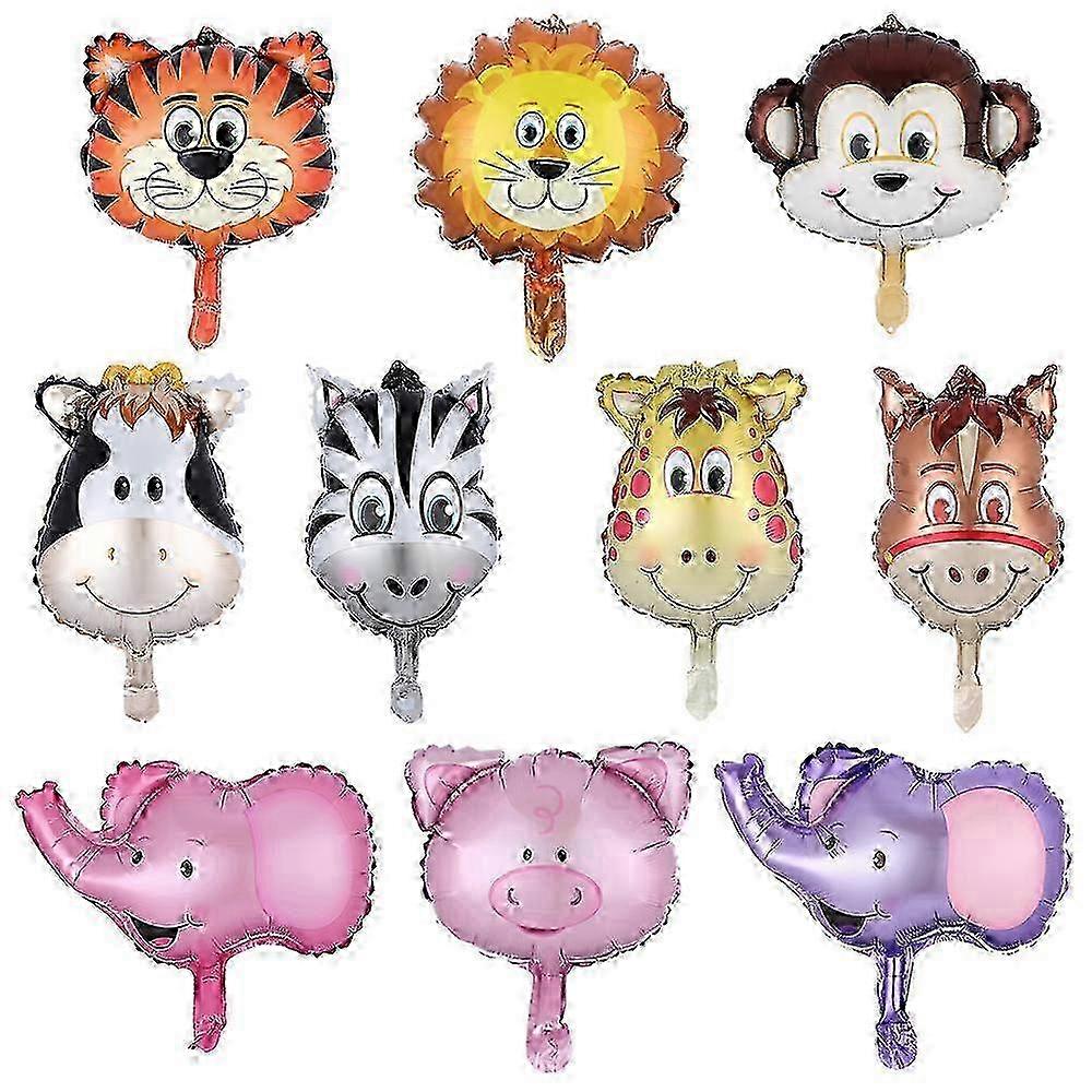 Zebra Tiger Monkey Lion Elephant Animal Head Foil Balloons Kids Birthday Party Animal Themed Party Decorations 10 Pieces