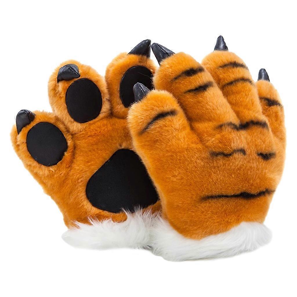 Simulation Tiger Paw Plush Gloves Striped Fluffy Animal Cosplay Stuffed Mittens Yellow