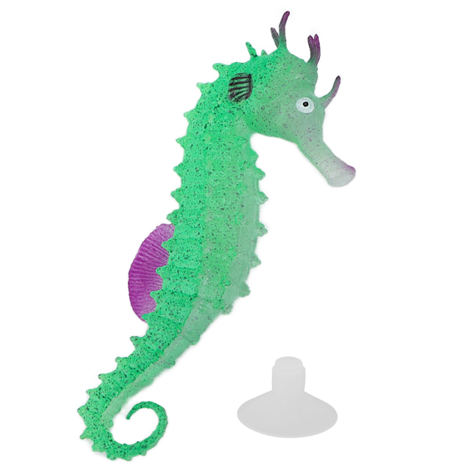 Simulation Seahorse Realistic Luminous Silicone Hippocampus with Suction for AquariumsGreen
