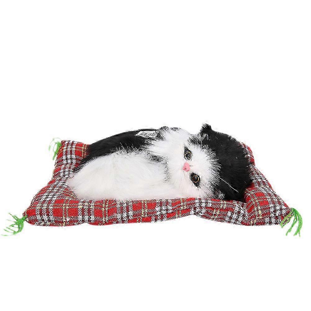 Simulation Animal Doll Stuffed Toys Plush Sleeping Cat Toy With Sound Kids Gift (black+white) 2025