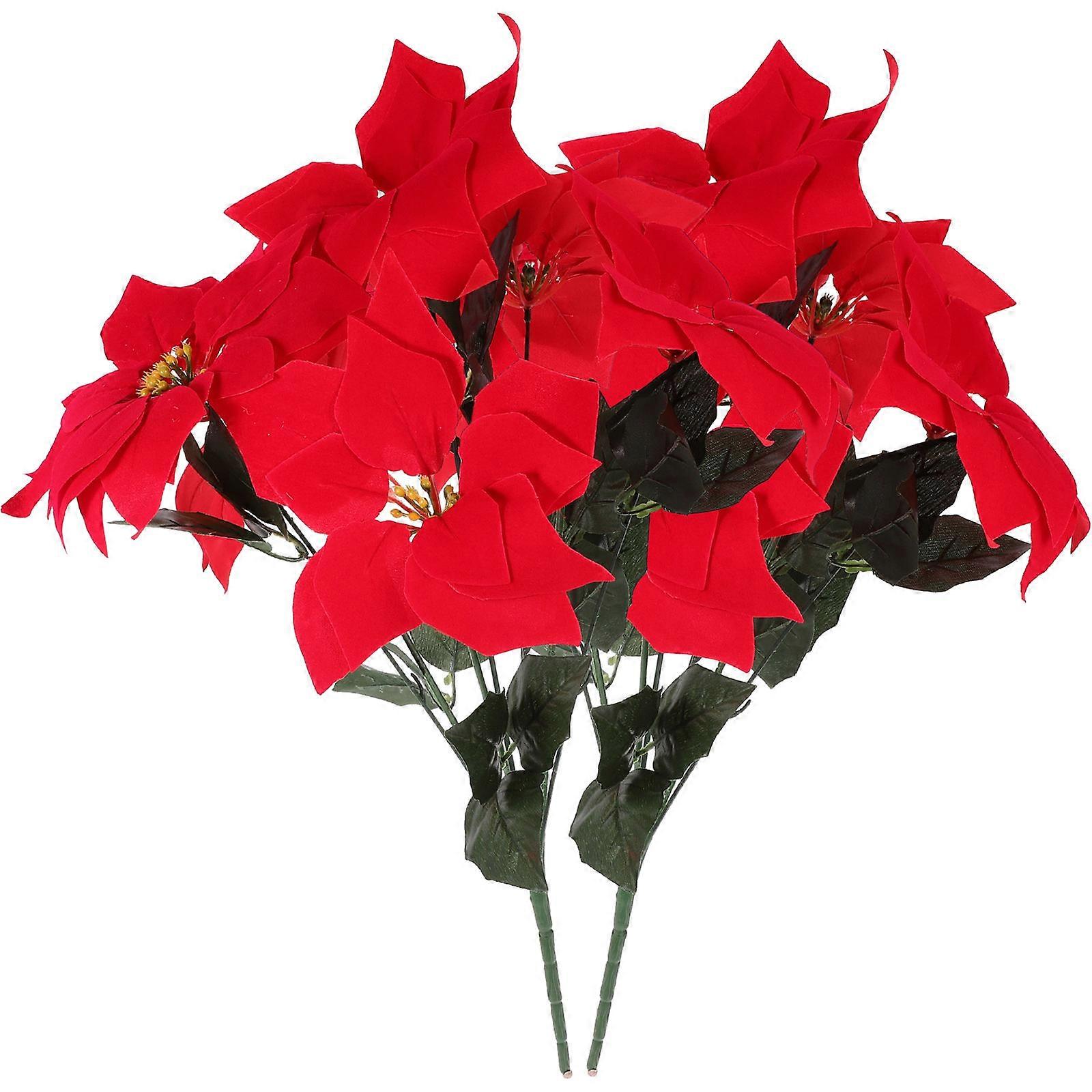 Simulation Flower Red Poinsettia Stems Christmas Home Office Decor 48x23x23cm 2Pcs