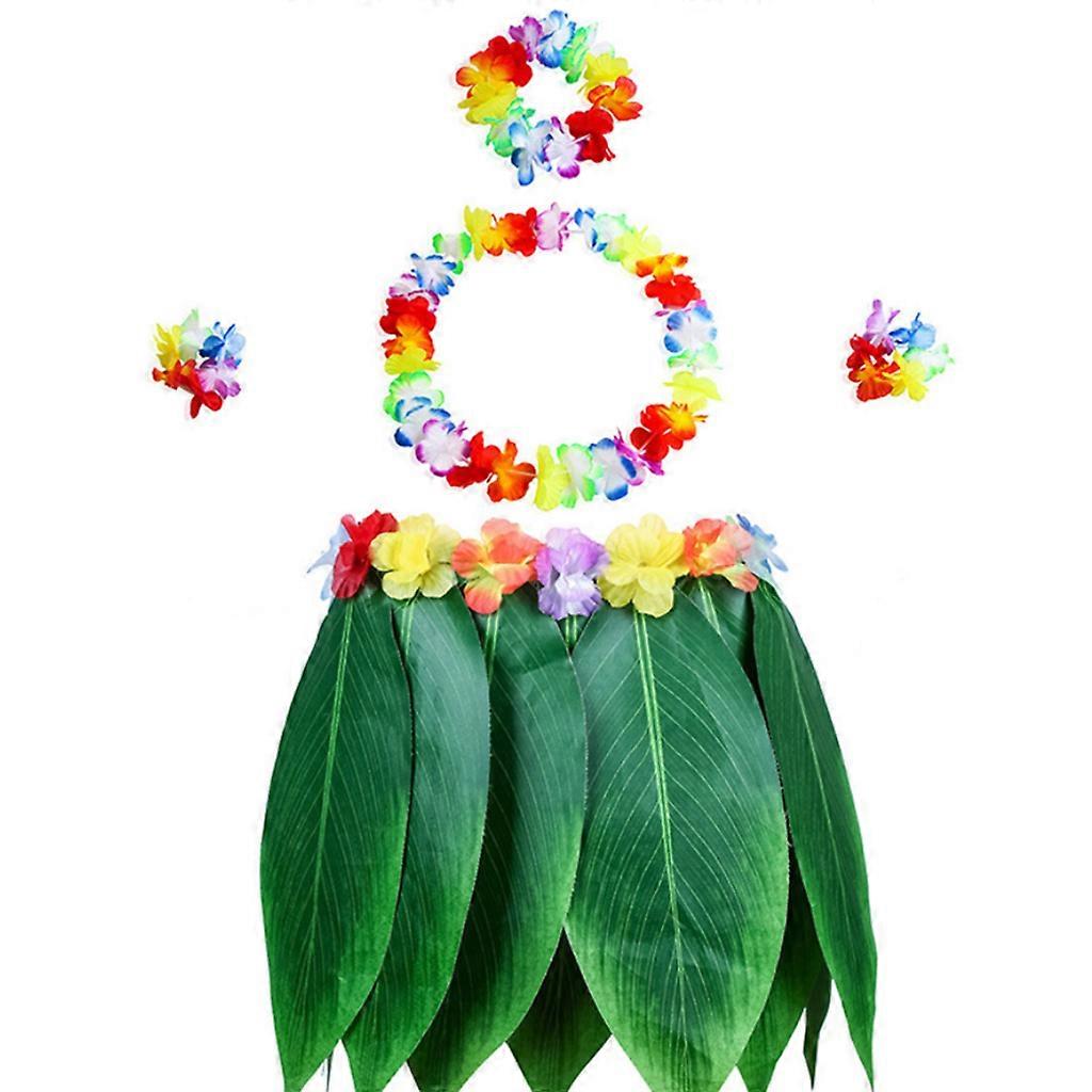 Simulation Leaf Skirt Garland Grass Skirt Set Hawaiian Carnival Beach Party Dance Skirt Adult Performance Costume Classic four-piece wreath + leaf