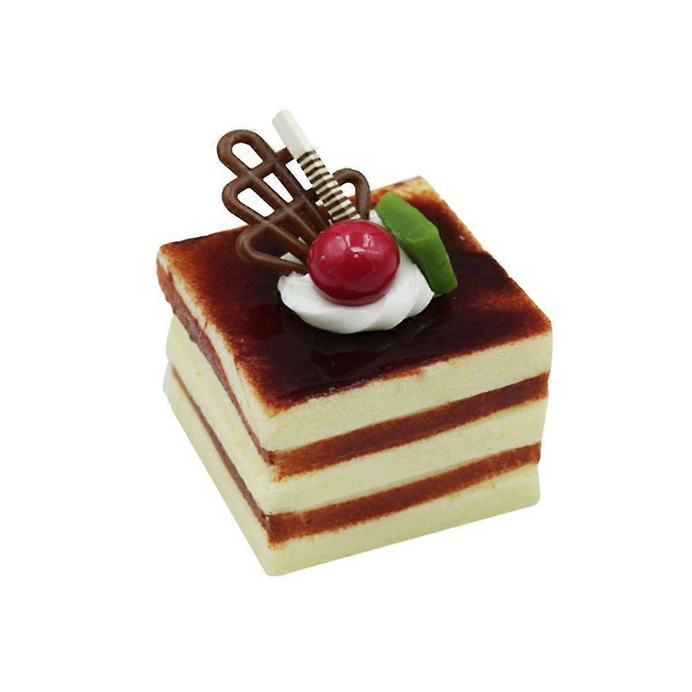 Simulation Three-tier Square Cream Fruit Cake Artificial Lifelike Fake Small Cake Model Food Cake Kitchen Photography Props Decoration (Coffee)