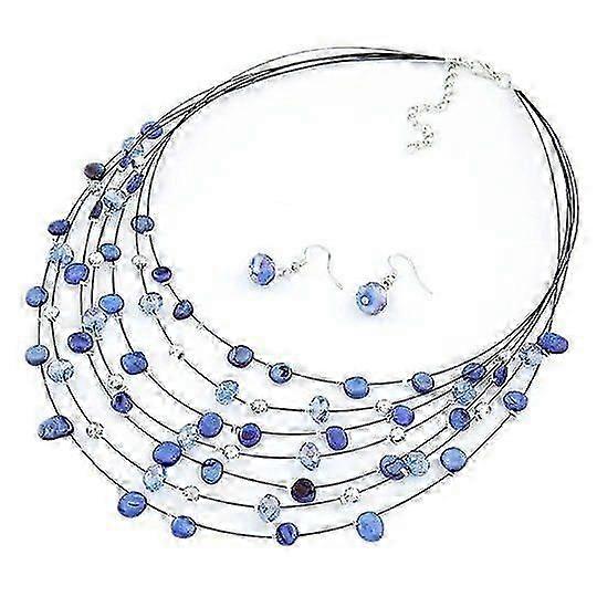 Women's Ethical Jewelry Set with Simulated Pearl and Crystal Multilayer Necklace and Earrings Fashion Party