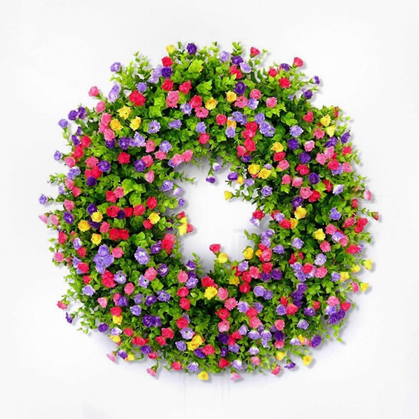 Colorful Floral Spring Wreath for Front Door Home Decor with Simulated Blooms - Thanksgiving and Fall Hanging Decoration