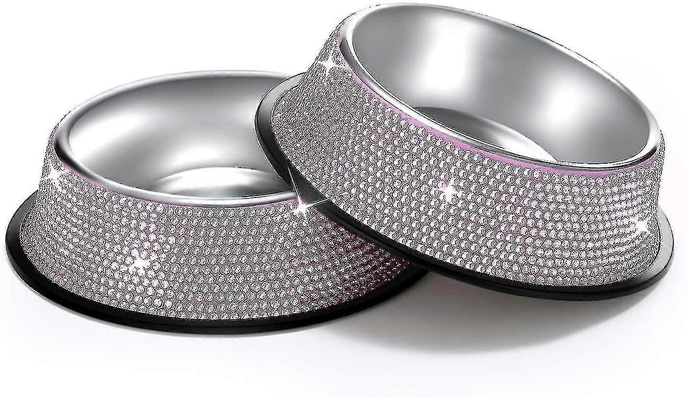 Shiny Rhinest Less Steel Pet Bowl Dog Cat Dog Erless Steel Pet Bowl, Single Bowl Rhinest Less Steel