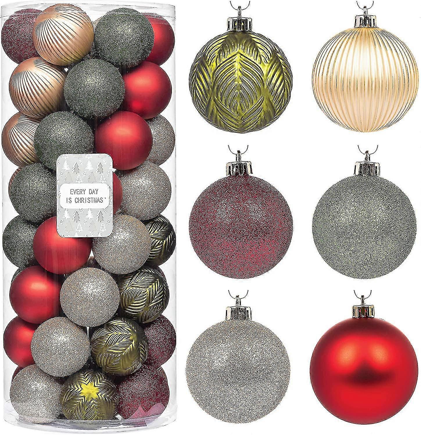 Description:Everyday is Christmas 2020 Christmas Ball Ornaments Collection barrel has different colors of handpicked matching decorative balls allow you to build your collection quickly and decorate with more joy this season.Christmas Balls Set make great addition to your Christmas and holiday decoration joys. Perfect home light for happy display of Christmas company and holiday party, as hanging ornaments on tree branches, table centerpieces, around wreaths, above reception at different lengths, etc. A great choice for commercial holiday decorations.These shatterproof Christmas tree balls are combining the beauty and luster of real glass with the unbreakable practicality of plastic. Ideal for families with kids, decorate without mistakes Deck the halls worry free.These balls are designed to fill your tree or home with the real feel of glass without all the harmful mistakes that could happen.SET of 50. Christmas ball ornaments are made of thicker high-quality plastic. Ties for Christmas balls included to make hanging easier. Balls are equipped with Caps, String Hangers. Dimensions: 2.24" (57mm) in diameter. Material(s): plastic/glitter
