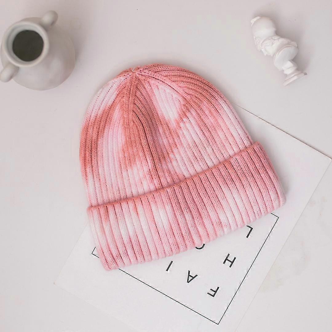 Chapeau Melon Tricot Tie-dye Pour Hommes Et Femmes Paissi Chapeau Chaud Chapeau De Sport Hip-hop Paississement Tricot,rose