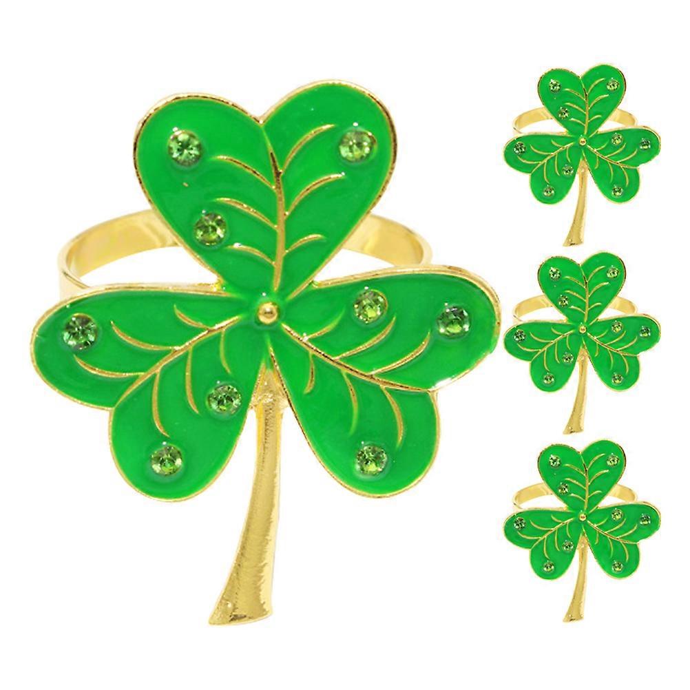 Shamrock Napkin Rings Patrick's Day Party Decorations Table Decoration for Dinner Parts Imitation Rhinestone 4Pcs