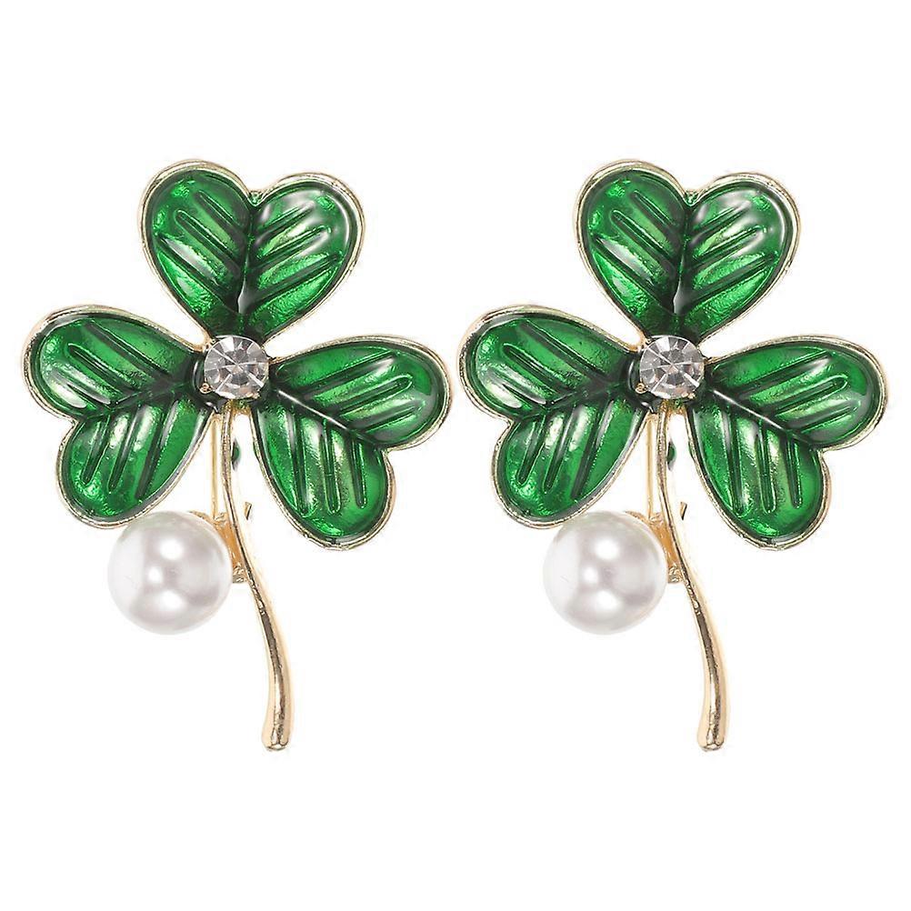 Shamrock Brooch Pin with Rhinestone Pearl Clover Lapel Pin for Women, Elegant Metal Clothing Accessory for Scarf, Coat, Bag Decoration, St. Patrick’s