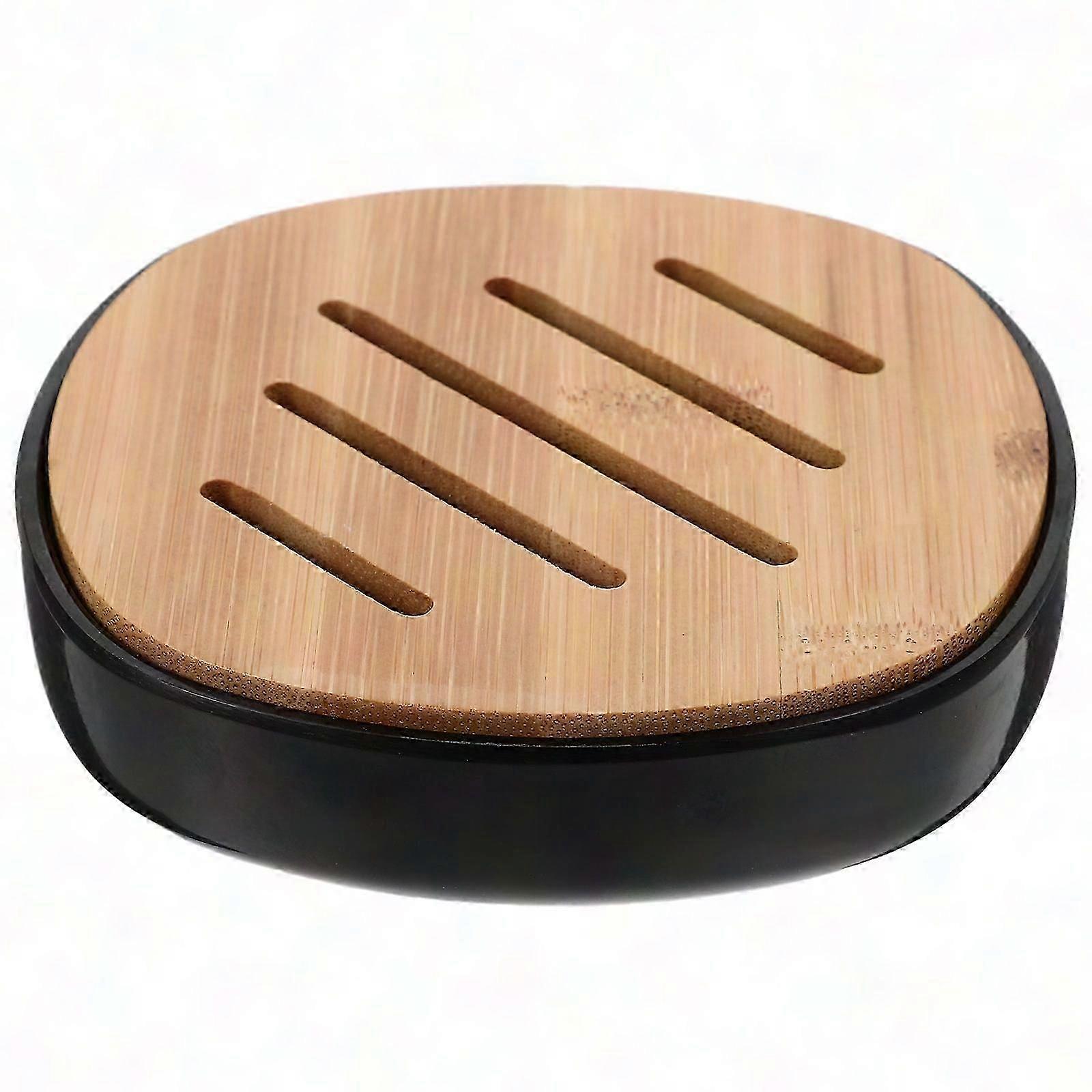 Shower Soap Tray Plastic & Bamboo Rectangular Bathroom Organizer