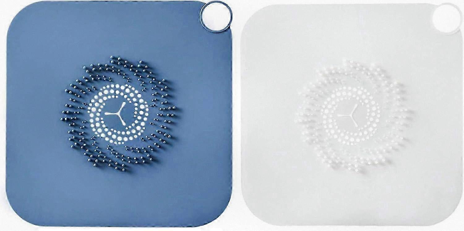 Premium Material: Made of durable, soft silicone for long-lasting use. Easy to clean to prevent clogging. Stylish Design: Simple and elegant transparent blue-white color with a ring design for easy storage and drying. Easy to Use: Simple installation��place on the sink and press to remove air. Size: 28x28cm (11x11inch). Versatile: Works in kitchen sinks to catch food residue or in bathrooms to block hair and debris, keeping drains clear. Wide Compatibility: Fits most standard drains in kitchens, bathrooms, sinks, and showers, effectively catching debris without blocking water flow.