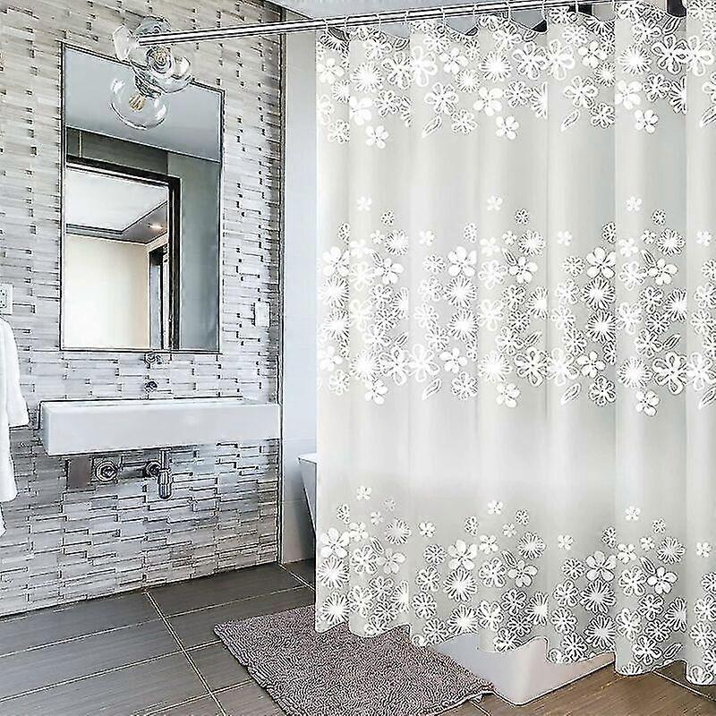 The shower curtain is made of PEVA material, which is 100% waterproof and keeps the floor splash-proof.