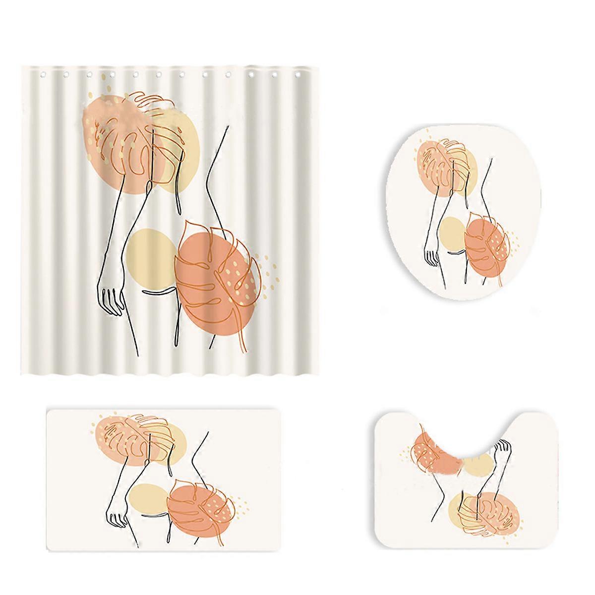 4PCS Bathroom Sets with Shower Curtain and Rugs and Accessories, Art Simple Aesthetic Bathroom Decor Shower Curtain Sets with Rugs Toilet Lid Cover