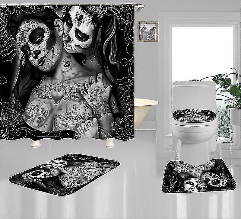 Shower Curtain Anti-mold Waterproof Curtains Kit To Bath Bath Curtain For Bathroom Gothic Skull Tattoo Women With 12 Shower Curtain Rings 180x200cm(4p