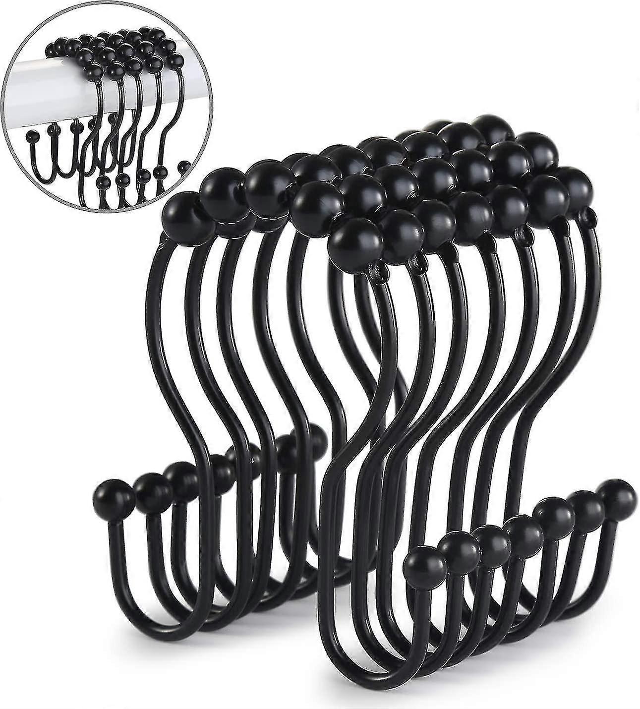 Shower Curtain Hooks, 12 Pcs Shower Curtain Rings, Stainless Steel Roller Rust-resistant Balance Sliding Anti-drop Double Shower Hooks For Curtain Bat