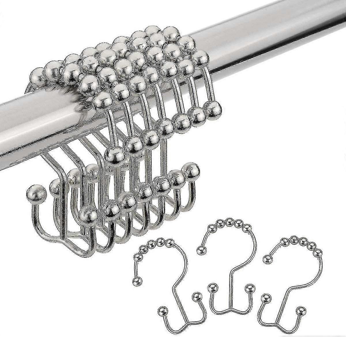 Shower curtain hook rings, 24 pieces per set, double-sliding design, stainless steel material