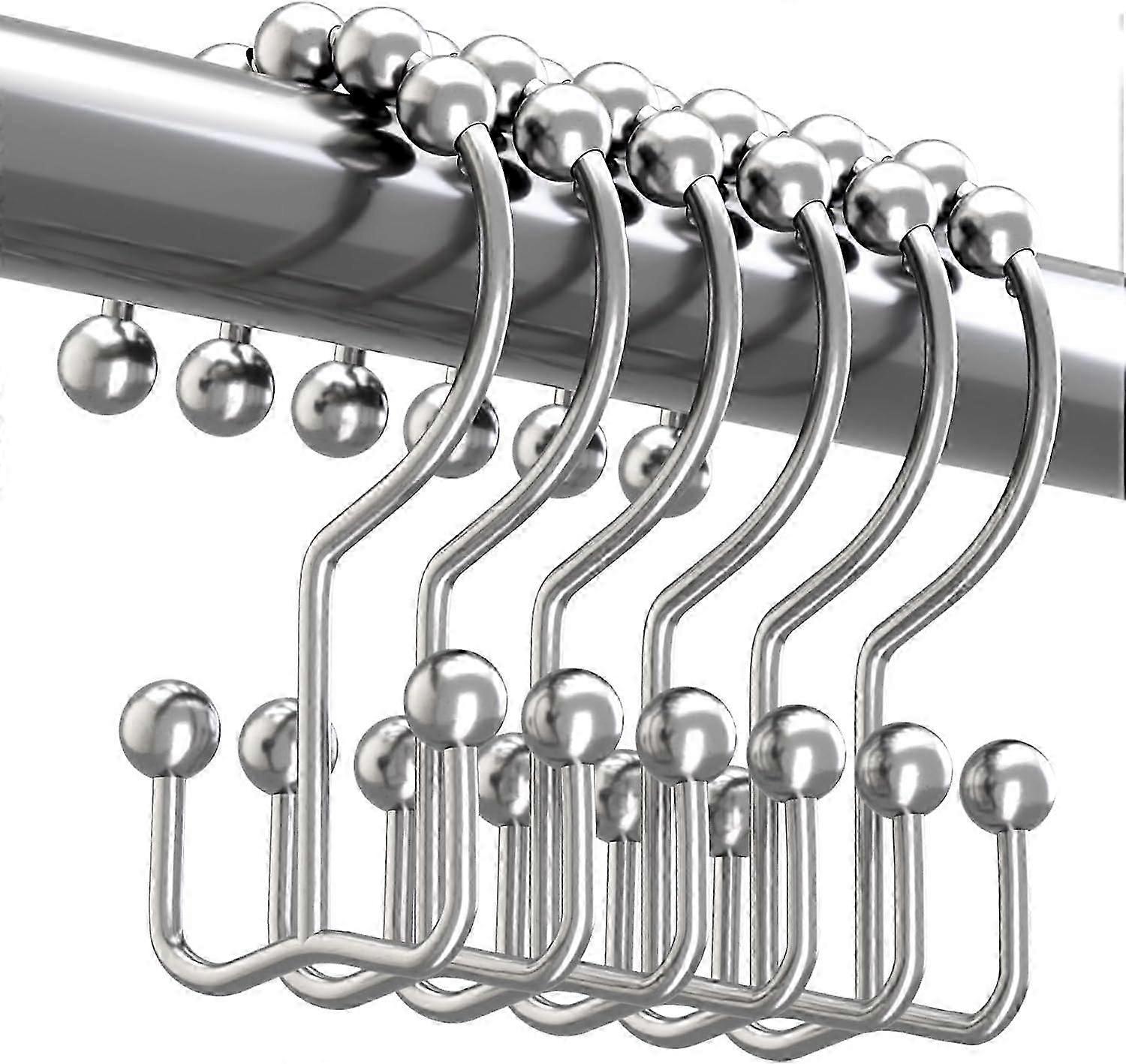 Shower Curtain Hooks Rings,Rust-Resistant Metal Double Glide Shower Hooks for Bathroom Shower Rods Curtains