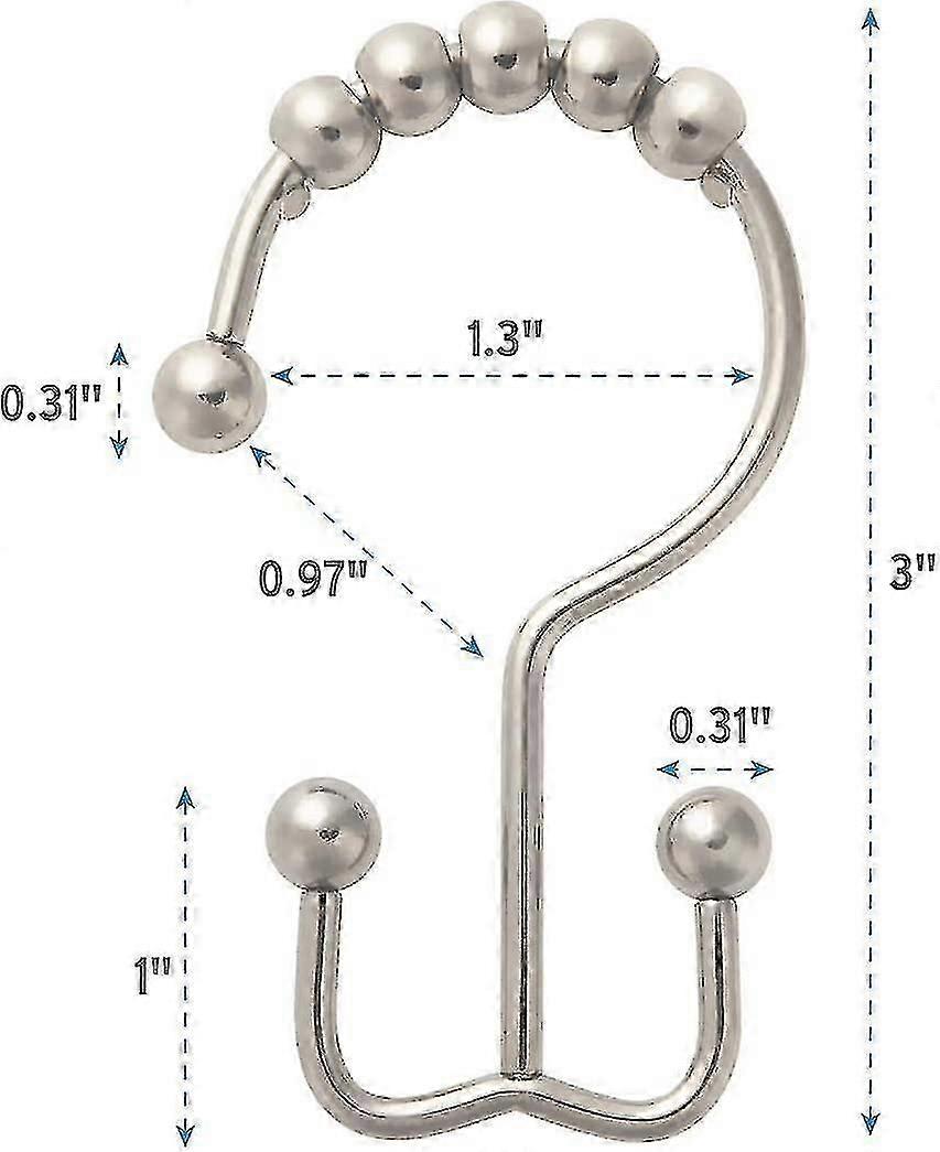 Smooth gliding -Engineered spherical roller balls of shower curtain hooks can glide smoothly and fast across shower rod.Double hooks design - The double roller glide shower curtain hooks are strong enough to hold up shower curtain and shower liner.High quality metal - These double glided shower curtain hooks are made of high quality and selected metal, which is resistant to rust effectively.Plated & polished - Coating is plated and polished on cover of double shower hooks to be used as elegant decor to your bathroom.Set of 12 - Sold as a set of 12 shower curtain rings. It meets most of quantity demands for one usual bathroom