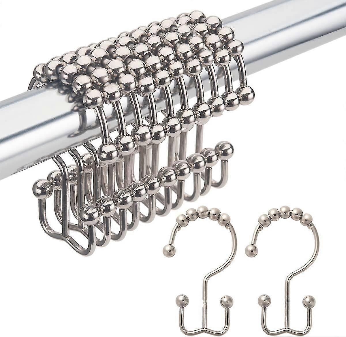 Shower Curtain Rings, Rust-resistant Metal Double Shower Hooks For Curtain Rolling