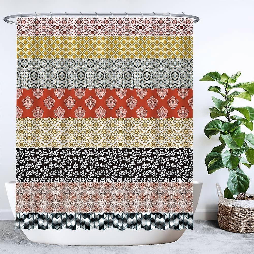 Shower Curtain - Stripes Geometric Vintage Retro Boho Bohemian - 180 x 200 cm - Washable - Waterproof - Anti-Mould - with 12 Rings1pc