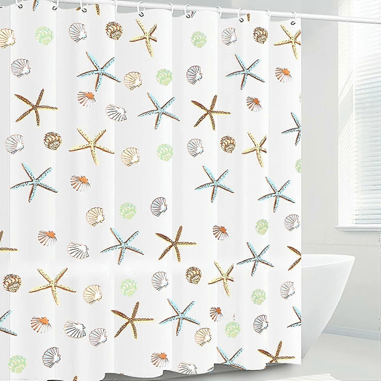 Shower Curtain 180x180cm, Waterproof And Mildewproof Peva Shower Curtain, With 12 Curtain Rings, Starfish Pattern