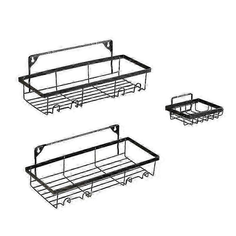 Shower Caddy No-drilling Adhesive Wall Mounted Bathroom Shower Shelf, Rustproof Shower Organizer For Bathroom & Kitchen Storage(3 Pcs, Black)--