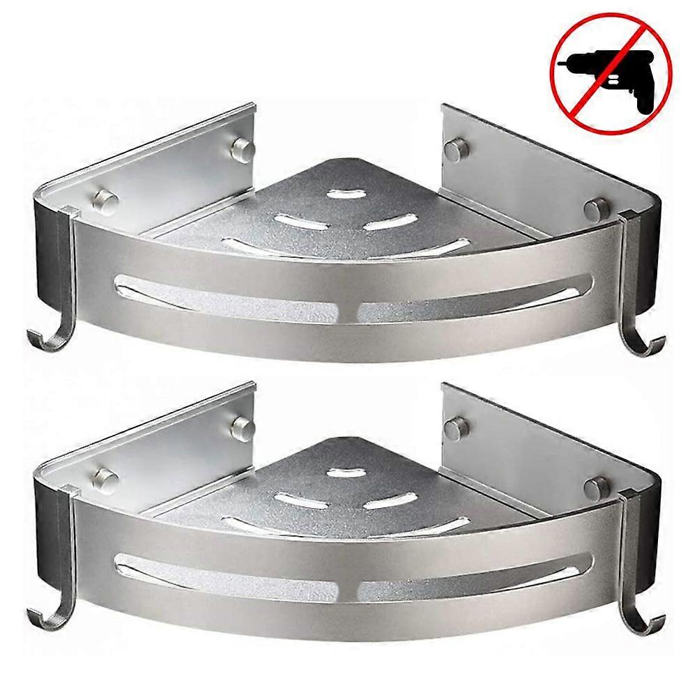 Shower Corner Shelf Shower Caddy Aluminum Bathroom Shelves-Strong Adhesive (No Drilling) Removable Hooks Rustproof Aluminum Basket Organizer Hanging S