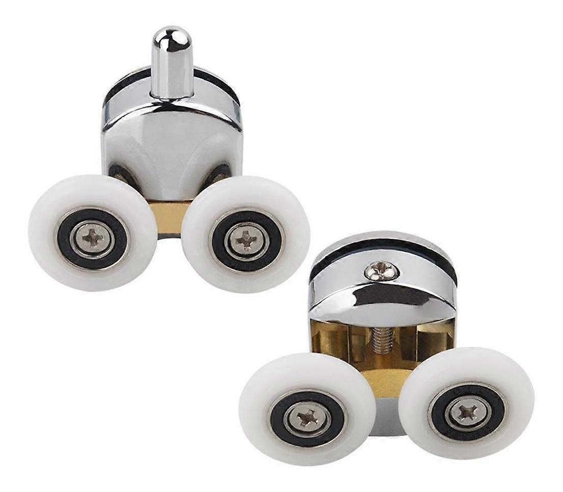 Shower door rollers, shower room pulley bathroom sliding glass round sliding door double wheel shower door hanging wheel roller (White) (2pcs)