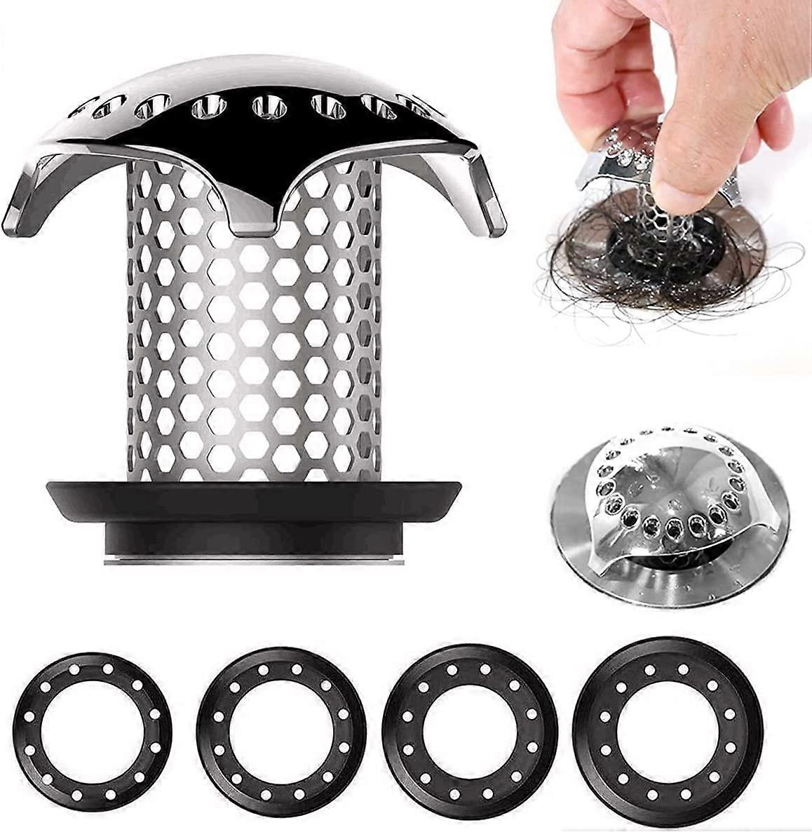Excellent Material: High quality 304 stainless steel body that withstands filthy conditions. The glossy look brings an elegant atmosphere to your bathroom. Please check your bathtub drain size before purchasing. Triangular Design: The fixed tripod is larger than the pipe, non-slip and prevents hair and debris. And the standard hexagonal honeycomb design with the highest grip, minimum material leaves more room for flow water, without clogging or slowing down. Wide Compatibility: 4 different size rubber rings can match most sinks and bathtubs. Supports drain size from 3.5cm to 4.5cm. Please note: not suitable for floor pipes, kitchen drains and drains with a drain hole diameter less than 3.5cm and larger than 4.5cm. Easy Installation and Cleaning: Choose the right size rubber ring to match your pipe size. Then insert and push it into the siphon. No need to clean them every time, just clean them within 3-4 days to prevent hair from floating (caution: difficult to clean after long time collection) SAVE MONEY & ECO-FRIENDLY: The drain protector is made of the highest quality stainless steel that is incredibly strong for unique durability. Stainless steel has a long life, just replace the rubber ring. No need to change the flimsy plastic strainer frequently. Product description Attention: please check the dimensions of your drain before purchase according to our instructions below. The drain hair catchers support an inner diameter of 3.5cm to 4.5cm. Creative solution for clogging: The hair catcher is designed to effortlessly catch any type of human or pet hair without disturbing the flow of water. It is enough to clean it regularly to allow a regular flow. Our shower siphon solves clogging, saves hundreds on expensive plumber bills and protects the environment and your pipes. 1. Shiny appearance. 2. Triangular design: prevents hair and debris from clogging. 3. Wide compatibility: 4 different size rubber rings can match most sinks and bathtubs. Easy installation and cleaning: just clean the hair within 3-4 days to prevent it from floating (caution: difficult to clean after a long time collecting). Features: Material: 304 stainless steel. Features: good cleaning, long service life. Specifications: 3.5-4.5cm. Included: floor drain + 4 rubber rings. Top quality components. 1. Stainless steel body, easy to clean. 2. No disgusting things, long service life. Instructions: 1. Remove the cap or mesh filter if necessary. 2. Unclog the siphon if clogged. 3. Insert it inside the drain, about 3.8 cm for better drainage. 4. All hair will be collected and ready for cleaning. 5. Please clean it every 3-4 days to allow steady flow. 6.Lift and remove hair with a paper towel.