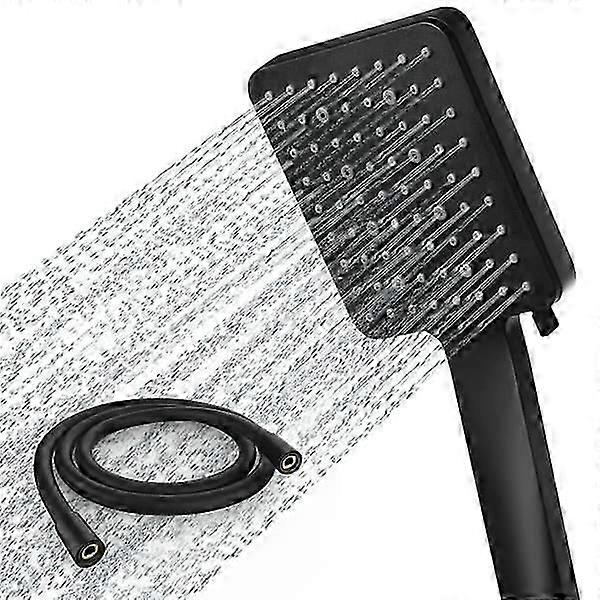 Shower head and hose, Newentor Shower head High pressure with one hand switch with 6 sprays, Large black shower head with hose 1.5 m