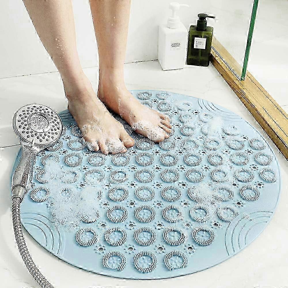 Shower mat material: wash and dry before use. 50 x 50 cm round, suitable for most bathrooms.Massage: The surface of the shower mat has a special shape and has the function of massaging the soles of the feet while being non-slip.Drain hole - Quick drainage, dry quickly, the water drains off after use, protects the surface from mould and other bacterial growth.NON-SLIP: Bathroom mat with suction cups on the bottom for firm grip.Machine washable: soft, easy to store and machine washable. Can be dried on the wall. Note: Due to the light and screen setting difference, the item's color may be slightly different from the pictures. Please allow slight dimension difference due to different manual measurement.